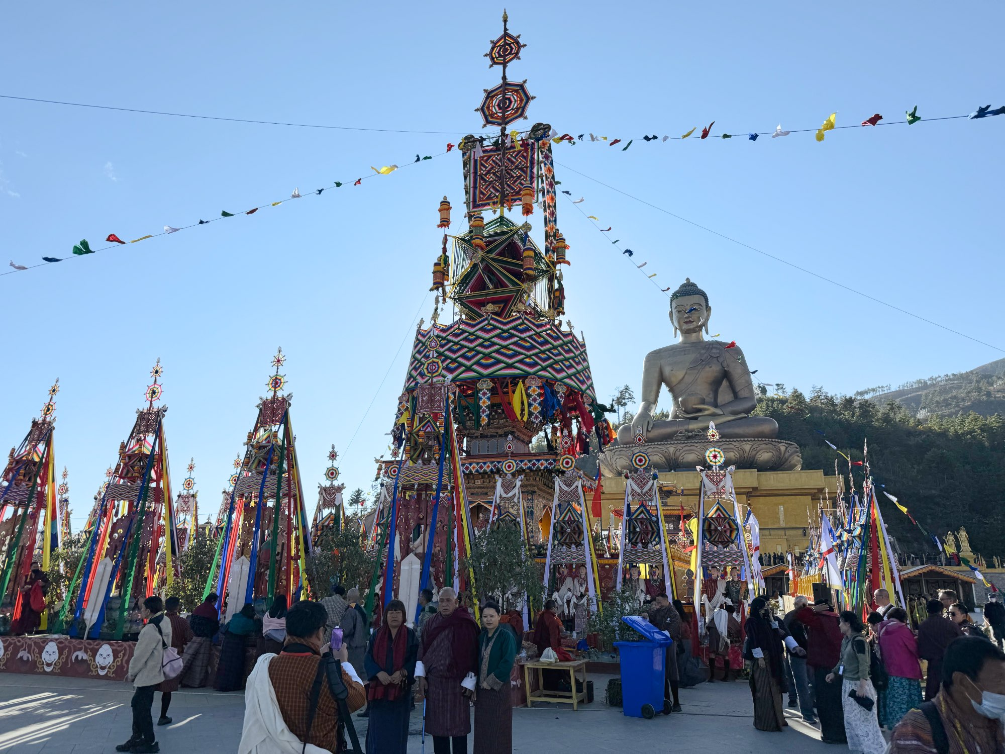 Was diesen Besuch besonders machte, war nicht nur die Statue selbst. Genau dort fand gerade der Abschluss des Jabshi Gyap Rituals statt. Das ist eine große, mehrtägige Zeremonie, die negatives Karma reinigen und Heilung bringen soll. Es waren Tausende Gläubige, Mönche und Rinpoches versammelt. Wir erfuhren, dass dieses Ritual speziell für den Weltfrieden durchgeführt wurde. Es war ein glücklicher Umstand, dass wir genau zu diesem Zeitpunkt dort sein konnten.
