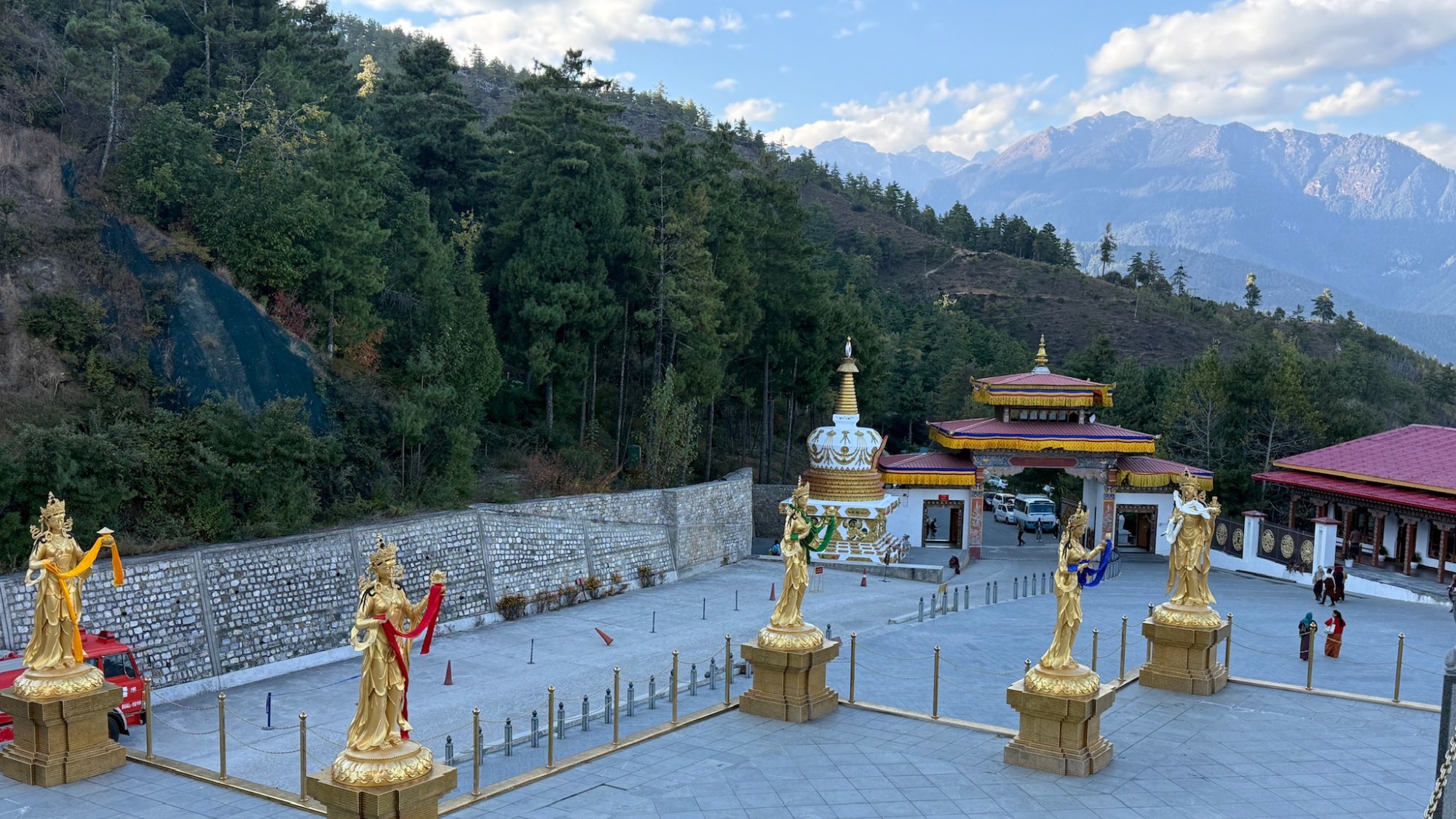 Wir trugen dabei zwei Herzensanliegen im Gepäck. Zum einen war es uns wichtig, nicht mit leeren Händen zu kommen. Wir hatten in der Gruppe gesammelt, um das Krankenhaus in Thimphu und die dortigen werdenden Mütter ganz konkret zu unterstützen. Zum anderen war es unsere spirituelle Mission, den Buddha-Dharma zu repräsentieren, wie wir ihn von S.H. Dorje Chang Buddha III gelernt haben. Damit verbunden war der Wunsch, von dem Projekt „Holy Heavenly Lake Buddhist Town“ zu berichten, das künftig Raum für über 30 buddhistische Zentren unterschiedlichster Herkunft bieten soll.