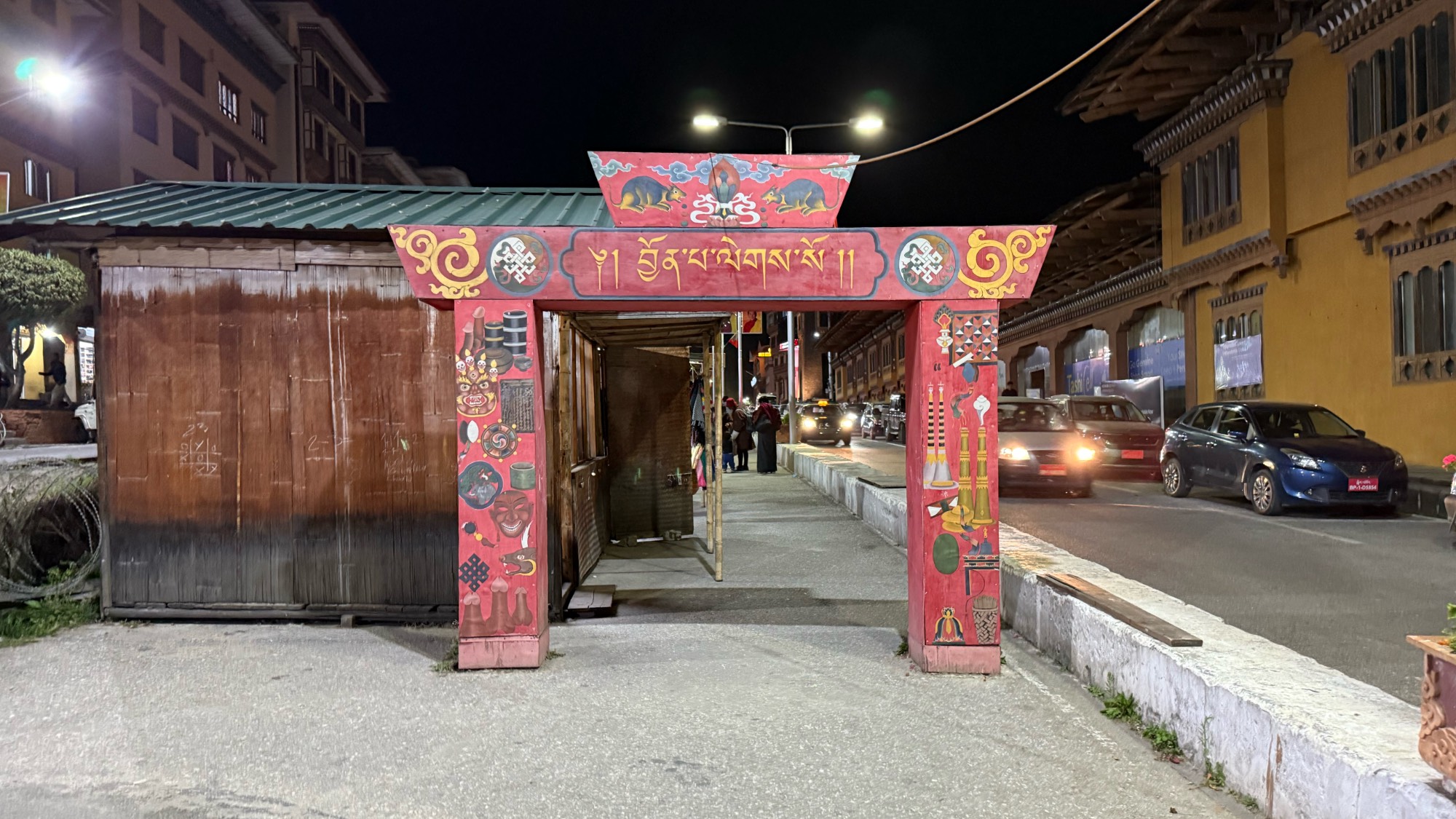 Abends nutzte ich die Gelegenheit, über die Norzin Lam zu schlendern. Dort befindet sich der Authentic Bhutanese Crafts Bazaar, den man durch ein markantes rotes Tor betritt. Dahinter reihen sich viele kleine Hütten aneinander, in denen lokale Kunsthandwerker ihre Waren präsentieren. Es gab dort wirklich viel zu entdecken. Neben handgefertigten Textilien, Schmuck, Holzschnitzereien und Thangkas findet man dort auch schöne Souvenirs als Erinnerung an die Reise.